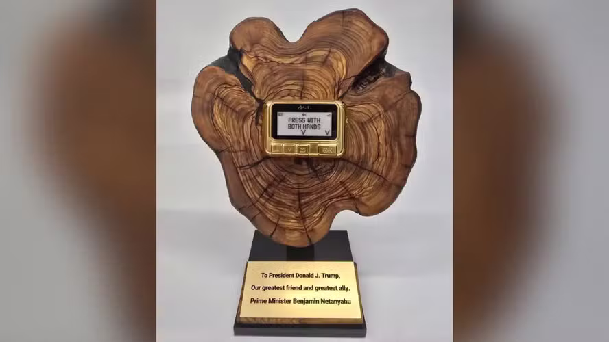 O presente faz alusão direta à operação israelense realizada em 17 de setembro do ano passado contra alvos do movimento xiita Hezbollah no Líbano, em que pagers usados por membros do grupo foram explodidos.