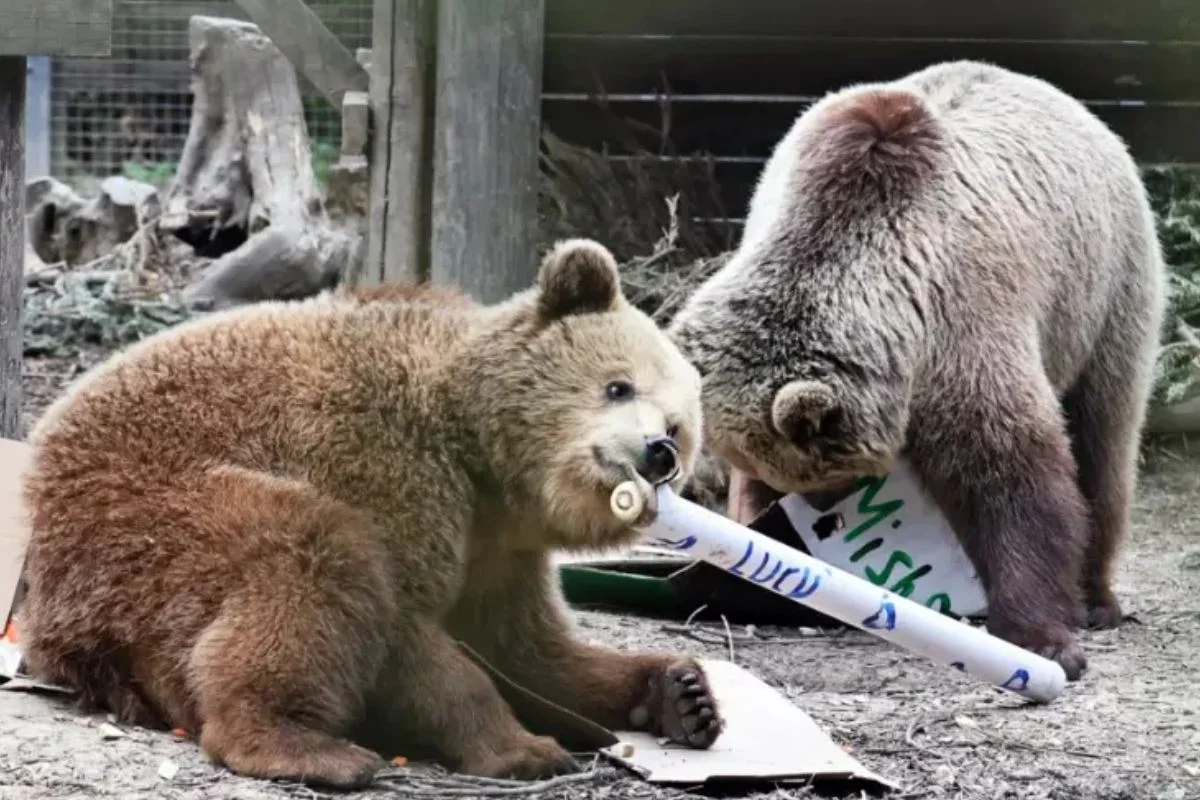 A dupla de ursos aproveitou a brecha e fugiu do abrigo
