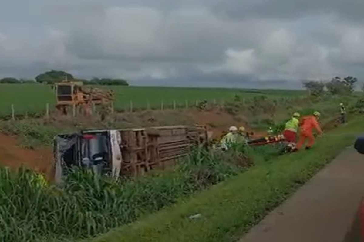 Um ônibus com 48 ocupantes tombou e deixou 10 pessoas gravemente feridas na manhã desta quarta-feira (17/12), na BR-050, no km 198, sentido Norte, no município de Campo Alegre de Goiás (GO).