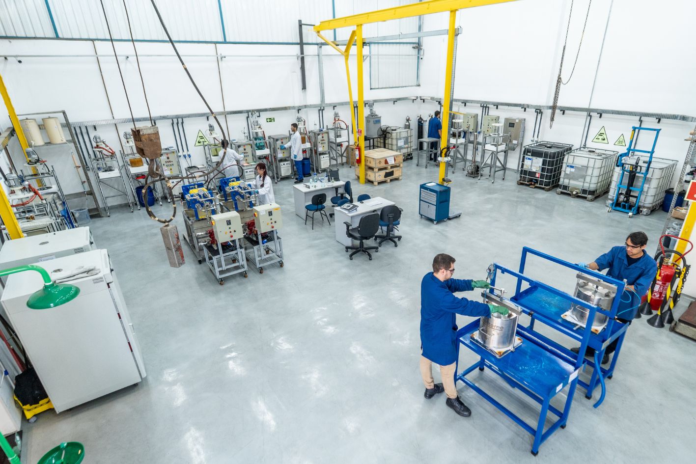 Na planta-piloto da Tupy, a black mass produzida segue para um processo de hidrometalurgia, que é a separação dos minerais críticos em soluções líquidas. Diferentes tanques são responsáveis por separar cada um dos materiais e, ao final do processo, lítio, manganês, cobalto, níquel e grafite estão devidamente separados.